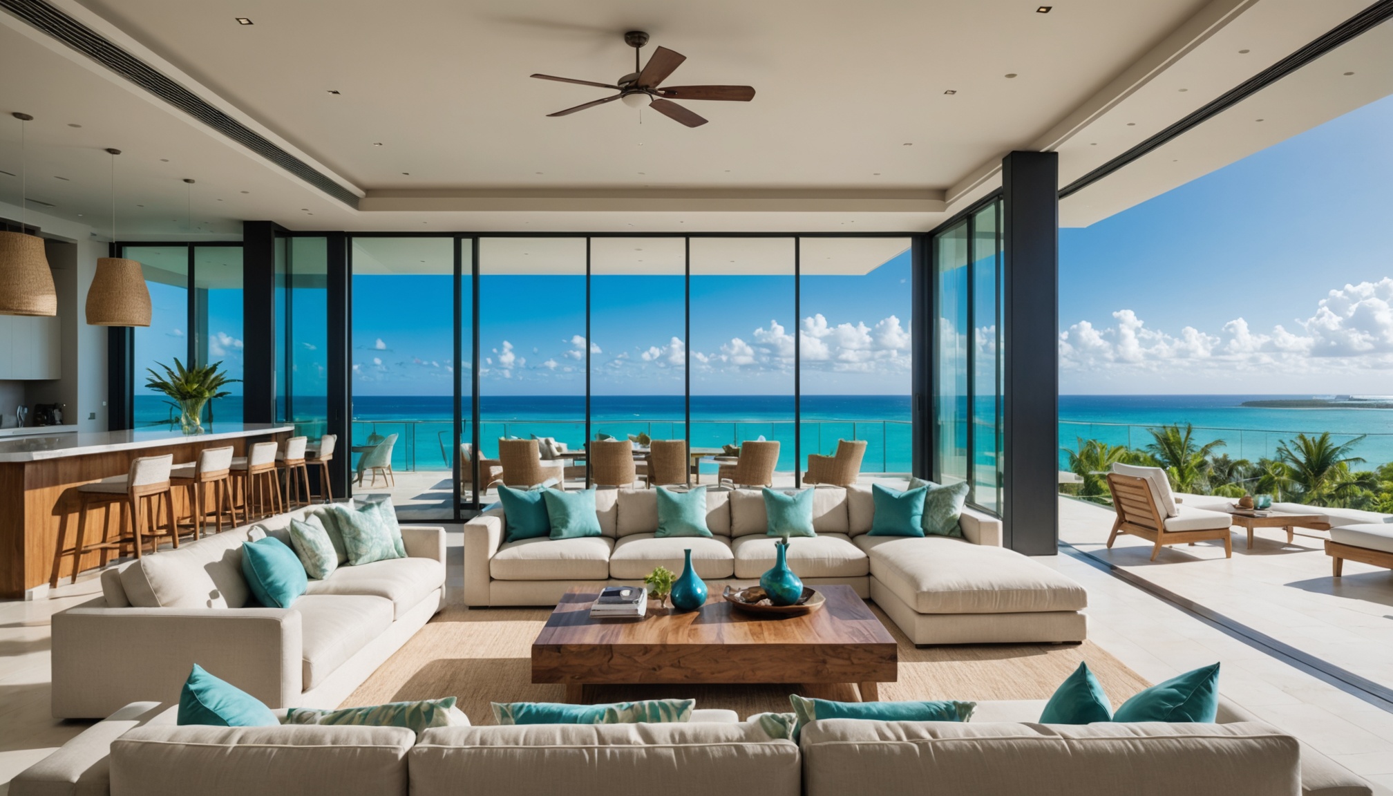 - Vue mer panoramique : terrasses orientées face à l'océan Indien avec baies vitrées floor-to-ceiling pour maximiser les panoramas